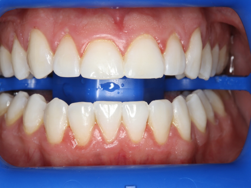 Ausgangsstatus vor dem Bleichen. Es wird wie beim Homebleaching die Zahnfarbe mit einem Farbschlüssel oder digital gemessen.